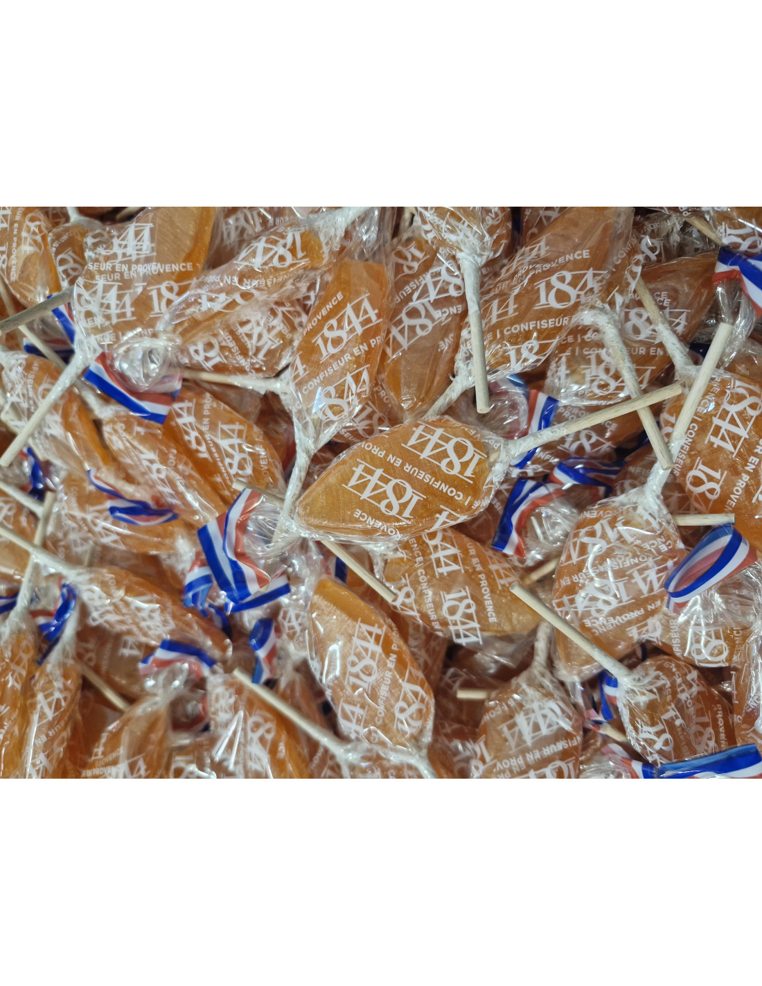Sucre, sirop de glucose, arômes naturels, denrée alimentaire colorante (concentré de carotte et de pomme), acide citrique.