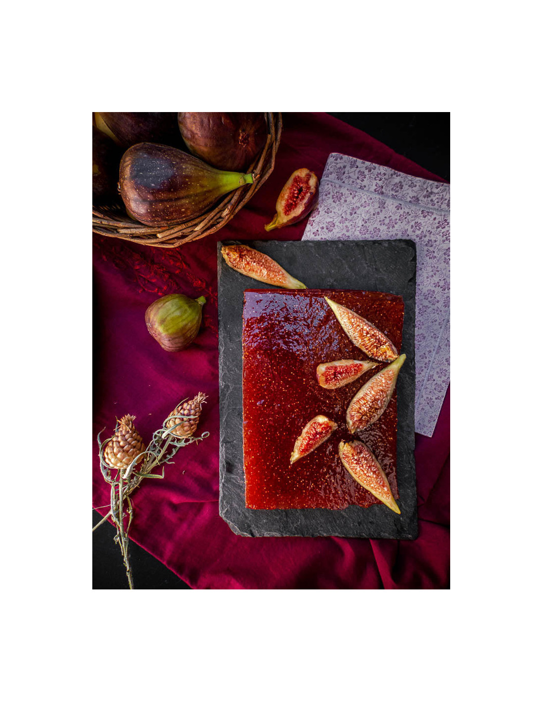 Ingrédients: Figue de Provence (55%), sucre, sirop de glucose, pectine (origine fruit), acide citrique, sans arôme ni colorant, sans conservateur.